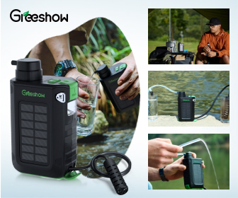 中でも【Greeshow(グリーショウ)】は、「その場の水を、その場で安全に」というコンセプトのもと、アウトドアから災害時まで幅広く活躍してくれる電動式浄水器。